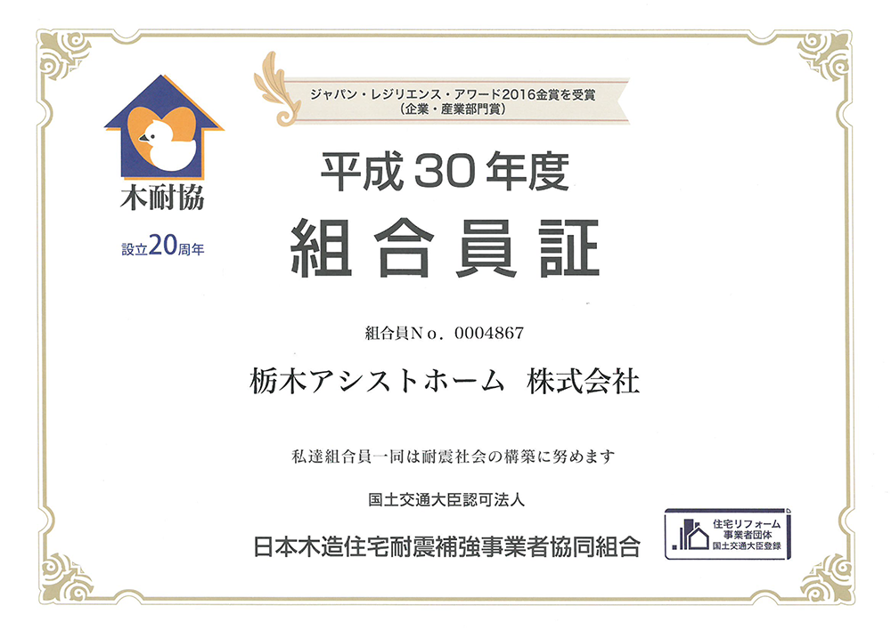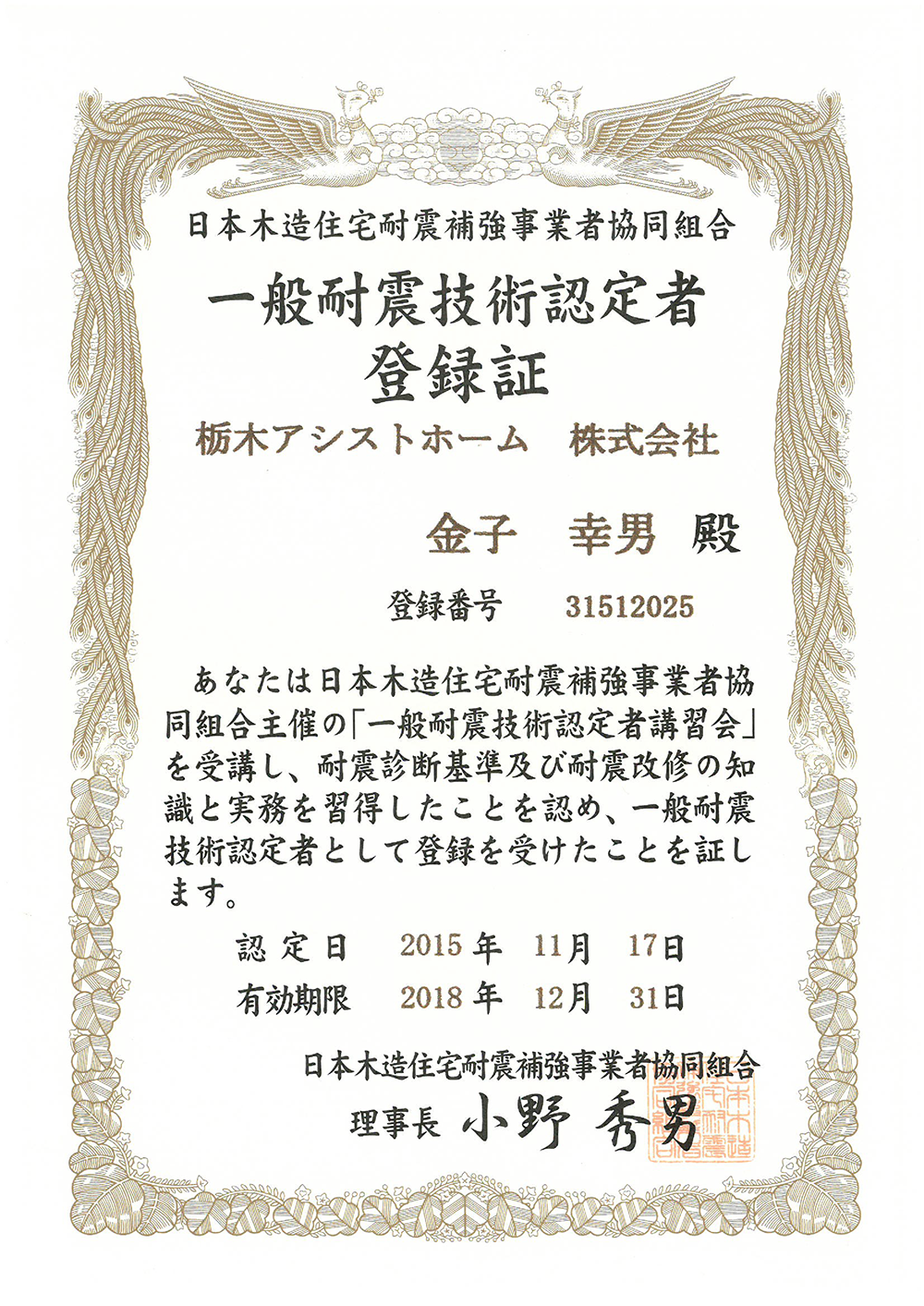 | 建設業許可 | 栃木県知事 許可(般―4)第24076号 |