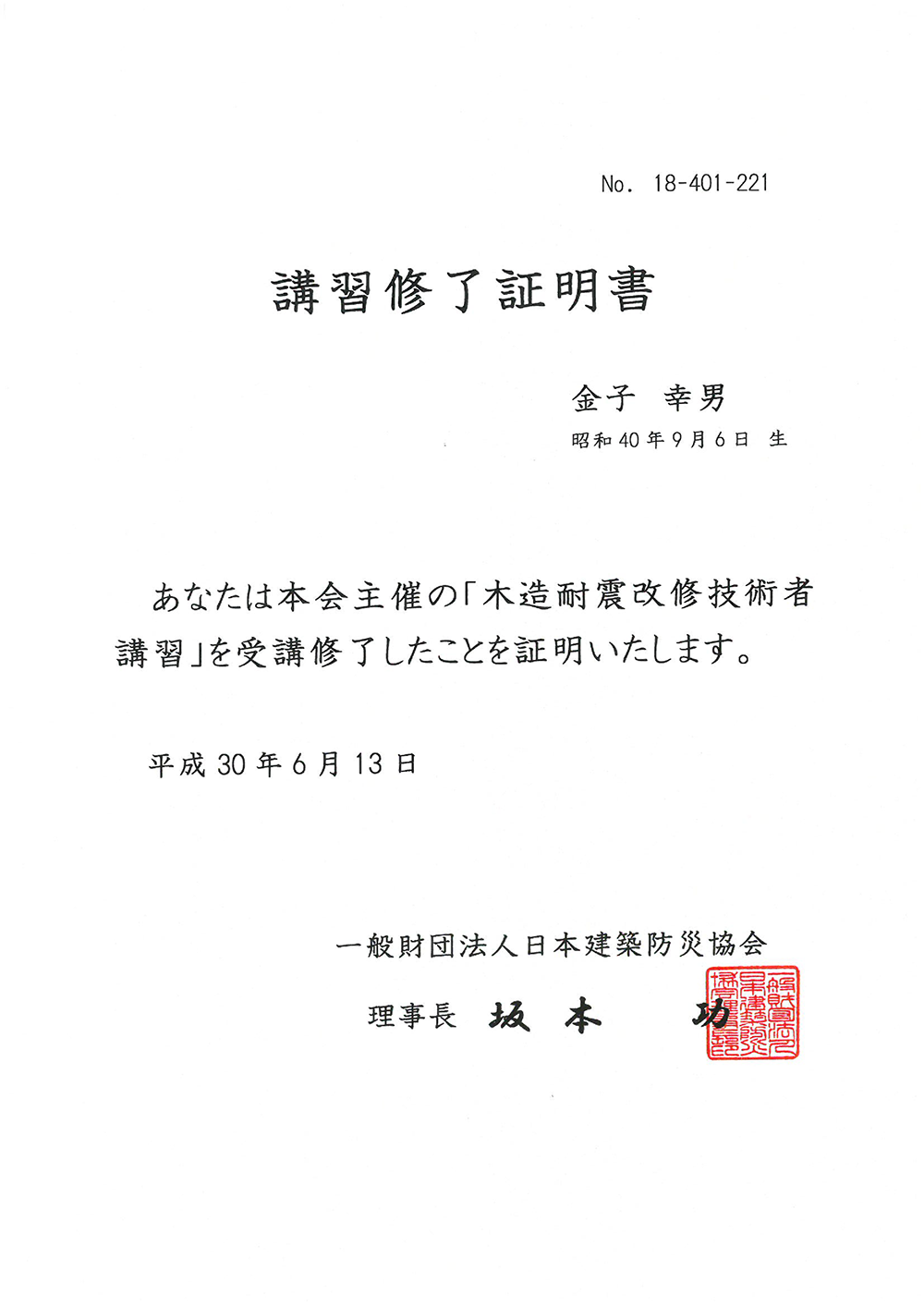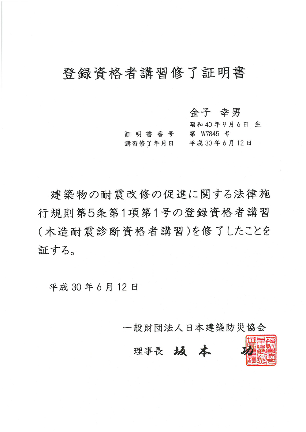 まだまだ発展途上ですが、言われれば何でもやるスタンス(今もそんなに変わりはないのですが)では、競合があると負けてしまう、特長がないと淘汰されると思い、木造の耐震一般技術認定者の資格を取ったり、愛犬家住宅コーディネーターや風水建築士コーディネーター等の資格も取りました。